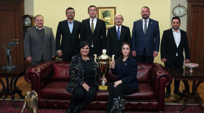 EGEOLAY/Çiğli Belediye Başkanı Utku Gümrükçü, Cumhuriyet Halk Partisi Genel Başkanı Kemal Kılıçdaroğlu’nu ziyaret ederek Çiğli Belediyesi Bear Sailing Yelken Takımının kazandığı Cumhurbaşkanlığı Kupasını takdim etti.