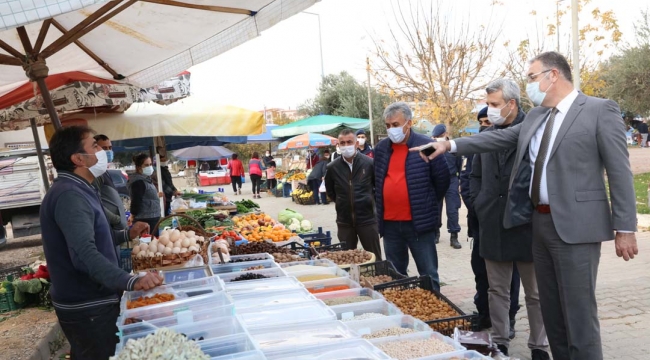 Güzelbahçe Kaymakamı Bülent Bayraktar ve Güzelbahçe Belediye Başkanı Mustafa İnce, Yelki veKahramandere pazarlarında koronavirüs denetimi yaptı. Denetim de esnafa hayırlı işler dileyen Bayraktar ve İnce, halkla sohbet edip tedbirli olmalarını söylediler.