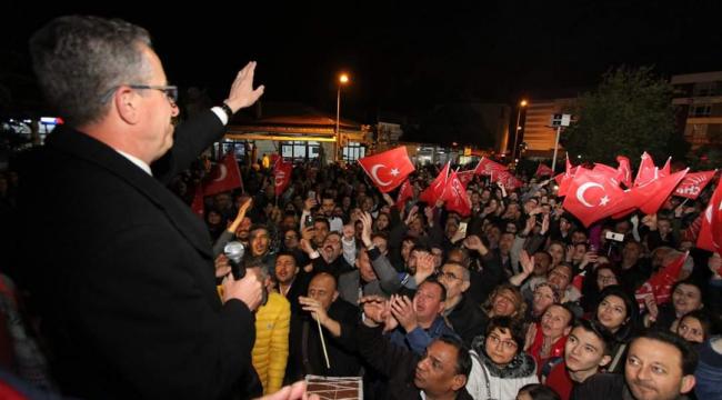 “Hep Sevgili Gaziemirliler, canım Seydiköylüler dedim. 58 yıldır Seydiköylüyüm, buralıyım. Akşam da büyük bir coşku vardı. 40 yıldır siyasetin içindeyim, sokağın nabzını bilen insanım. İnsanların elimi sıkışından, gözlerimin içine bakışından coşkusunu zaten hissetmiştim. Bir sloganımız vardı; ‘Biz iyi insanlarız’ diye. O gerçekti. Siz iyi insansanız onu yansıtıyorsunuz zaten. Sevgili Gaziemirliler de samimiyetimize inandı, bizi destekledi. Sahada hemşehrilerimiz bizi hiç yalnız bırakmadı, evlerine misafir etti, sofralarına oturttu, sokakta kahvaltılar düzenledi. Hepsine söylediğim bir şey vardı; ‘Artık sorumluluk sizde, benim sorumluluğum 1 Nisan’dan sonra başlayacak. Bir oyluk büyük gücünüz var. Doğru olduğuna inandığınız yer için kullanın’ diye. ‘Rekor ayla seçileceğim, hepinizin başkanı olacağım ve hizmetlerde ayrım yapmayacağım’ sözünü verdim. Sözümün arkasındayım. Gaziemirli hemşehrilerimiz de samimiyetimize inandı. Sağ olsunlar var olsunlar” diye konuştu.