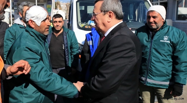 Konak Belediye Başkanı Abdül Batur, Kahramanmaraş merkezli depremlerin yarattığı büyük yıkımın ardından bölgeye giderek arama, kurtarma ve destek çalışmalarına katılan, görevlerini tamamladıktan sonra İzmir’e dönen Konak Belediyesi ekiplerini karşıladı. Belediyenin temizlik işleri şantiyesinde kahraman ekiple bir araya gelen Başkan Batur, Hatay’da üstlendikleri görevleri başarıyla yerine getiren ekip üyelerine teşekkürlerini iletti. En son yaşanan ve art arda meydana gelen Hatay merkezli depremlerde, yıkılan duvar sebebiyle yaralanan ekip üyelerine de ‘geçmiş olsun’ dedi. Başkan Batur, “Gece gündüz durmadan çalıştılar ve orada Konak Belediyemizin çalışmalarını en iyi şekilde yürüttüler. Allah bir daha böyle afet yaşatmasın. Hatay merkezli depremlere de arkadaşlarımız yemek sırasında yakalandılar. Maalesef duvarın yıkılmasıyla yaralandılar. Yaralanma pahasına orada en iyi şekilde hizmet etmeye çalıştılar” diye konuştu.