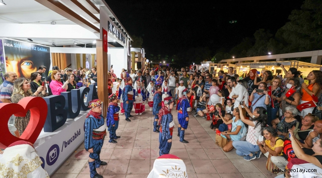 Açıldığı günden beri ziyaretçi akınına uğrayan Buca Belediyesi standında, bu defa 9 Eylül kurtuluş coşkusu yaşandı. Yoğun katılımın olduğu gecede yüzlerce ziyaretçiye bayrak dağıtımı gerçekleştirilirken, Buca Fomged Halk Oyunları Ekibi’nin minik öğrencileri halk oyunları gösterisi ile standa renk kattı. Bucalı miniklerin sunduğu gösteri izleyenlerden büyük beğeni aldı. Son olarak bando takımının çaldığı eğlenceli şarkılar ile eğlence doruğa ulaştı.