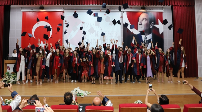 İktisat, İşletme, Maliye, Sağlık Yönetimi, Siyaset Bilimi ve Kamu Yönetimi, Uluslararası İlişkiler, Uluslararası Ticaret ve İşletmecilik Bölümlerinde lisans eğitimlerini tamamlayan toplam 83 genç İKÇÜ’lü kep atarak mezuniyet coşkusunu hocalarıyla paylaştı. İktisadi ve İdari Bilimler Fakültesi Dekanı Prof. Dr. Serhat Burmaoğlu’nun ev sahipliğinde yapılan törende, Rektör Yardımcısı Prof. Dr. Turan Gökçe’nin yanı sıra, dekanlar, akademisyenler gençlerin mezuniyet coşkusuna ortak oldu.