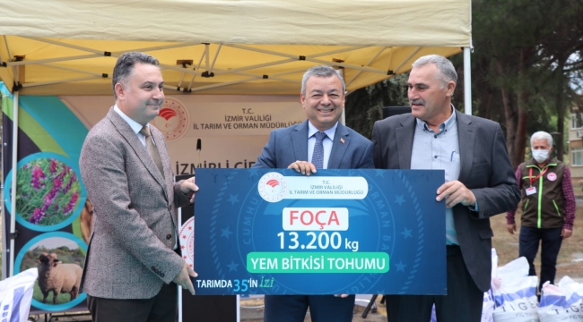 Törenin açılış konuşmasını yapan İl Tarım ve Orman Müdürü Mustafa Özen “2021 yılı başlangıcında ‘Tarımda 35’in İzi’ sloganıyla çıkmış olduğumuz yolda İzmir’in 30 ilçesine dokunan, yerinde yapmış olduğumuz tespitler, analizler sonucunda oluşturduğumuz 35 projemizle bir hedef koyduk. Gelmiş olduğumuz 10. ayda 35 projemizin %70’ini gerçekleştirmiş durumdayız. Bugün burada sahaya çıktığımız zaman üreticilerimizde sorun olarak dinlediğimiz önemli konulardan birine omuz vermek, destek olabilmek adına bir aradayız. Üreticilerimize yem bitkisi tohumu dağıtımı gerçekleştireceğiz” dedi.