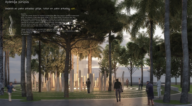 Üç aşamalı bir değerlendirme sonucunda birinci seçilen proje, 10 Ekim’in unutulmamasını, hayatını kaybetmiş ya da hayatta kalan bireylerin anısını onurlandırmayı, bir anımsama, anımsatma ve anma mekânının kente kazandırılmasını amaçlıyor. Alsancak’ta Atatürk Caddesi ile Liman Caddesi’nin kesiştiği yerde bulunan Asteğmen Besim Bey Parkı’nda uygulanacak proje, alanın emek, demokrasi ve barışa adanarak yurttaşların bir araya geleceği bir kamusal mekân olarak yeniden üretimini hedefliyor.