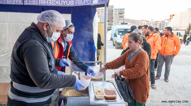 EGEOLAY/İzmir Büyükşehir Belediyesi, Adıyamanlı 60 yaşındaki depremzede Hasan Yavuz’un kapısını açtığı 2 dönümlük araziyi koordinasyon merkezine dönüştürdü. 3 bin kişilik aşevinden yardımların dağıtılmasına kadar tüm çalışmaların yönetildiği merkez, Adıyaman’da depremin yaralarını sarmak için çalışıyor.