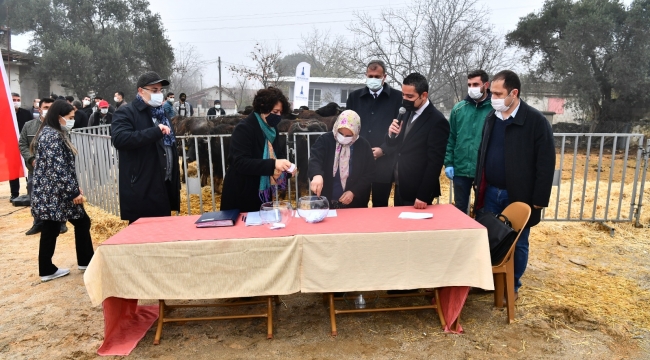 EGEOLAY/İzmir Büyükşehir Belediye Başkanı Tunç Soyer, kırsal kesimde çiftçi ve üreticilere destek vermeyi sürdürüyor. Büyükşehir, manda yetiştiriciliğinin yeniden can bularak İzmir mozerellasının dünya markası haline gelmesi amacıyla, bu kez Tire'de 33 Anadolu mandasını 10 üreticiye hibe etti.