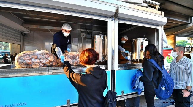 İzmir Büyükşehir Belediyesi bebeklikten üniversite çağına kadar sosyal yardımları kentlilerle ulaştırıyor. Büyükşehir aynı zamanda 2019’dan itibaren özel öğrencilerin eğitim gördüğü kamuya ait 29 özel eğitim okuluna düzenli olarak öğle yemeği desteği sağlıyor. Bu okullara her gün ortalama 2 bin 500 kişilik öğle yemeği dağıtılıyor. Üniversite öğrencilerine destek olmak için de 6 noktada çorba durakları var. Bu duraklarda toplam 343 bin 930 kişilik çorba dağıtıldı. Ayrıca 6 noktada da öğrencilere akşam yemeği sunuluyor. Ege Üniversitesi Kampüsü, Dokuz Eylül Üniversitesi Kampüsü, İ.Y.T.E Üniversitesi Kampüsü, Katip Çelebi Üniversitesi Kampüsü, Demokrasi Üniversitesi, Bakırçay Üniversitesi’nde toplam 571 bin 200 kişilik akşam yemeği dağıtıldı.
