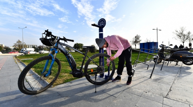 İzmir'de bisikletler için ücretsiz tamir istasyonları kuruldu