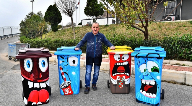 Park ve Bahçeler Dairesi Başkanlığı'nda boyacı olarak çalışan Murat Ülkü'nün çizgi film karekterlerinden esinlenerek sanat eserine dönüştürdüğü çöp kutuları, başta çocuklar olmak üzere İzmirliler tarafından da beğeni topladı.