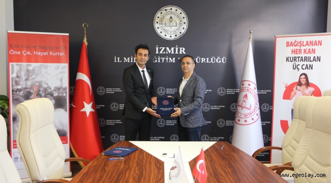 EGEOLAY/İzmir İl Milli Eğitim Müdürlüğü ve Türk Kızılay Ege Bölge Kan Merkezi arasında gönüllü kan bağışçısı kazanılması ve kan bağışçısı olma konusunda bilinçlendirme faaliyetlerinin yürütülmesi ile ilgili olarak işbirliği protokolü imzalandı.