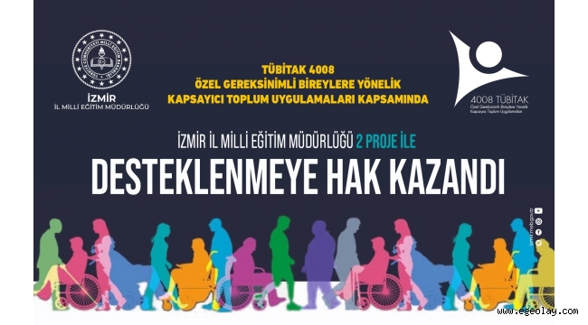 İzmir İl Milli Eğitim Müdürlüğü adına yürütücüsü Fatma Beyza Taş’ın olduğu “Kapsayıcı Toplum İnşaasında Dijital Vatandaşlık Eğitimi” ve yine İzmir İl Milli Eğitim Müdürlüğü adına yürütücüsü Doğan Seyfettin Aldağ’ın olduğu “ Bilimi Yaşıyorum” isimli projeler TÜBİTAK 4008 “Özel Gereksinimli Bireylere Yönelik Kapsayıcı Toplum Uygulamaları” kapsamında başarılı oldu. 2 proje ile desteklenmeye hak kazanan tek il müdürlüğü İzmir İl Milli Eğitim Müdürlüğü oldu.