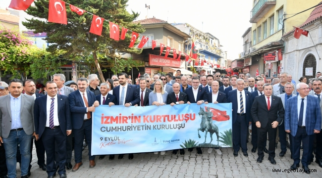 İzmir Büyükşehir Belediyesi'nin hazırladığı 350 metre uzunluğundaki Türk bayrağını taşıyan İzmirliler Gaziler, Anafartalar ve İkiçeşmelik caddeleri üzerinden Cumhuriyet Meydanı'na ulaştı. Marşlar eşliğinde ilerleyen korteje yurttaşlar da alkışlarla destek verdi. Yürüyüşte duygularını aktaran Başkan Tunç Soyer, “Çok coşkuluyuz, gururluyuz. 9 Eylül, sadece İzmir ve Türkiye için değil bütün dünya için mazlum milletlerin umut bulduğu bir gün. Savaşın zaferle, zaferin barışla taçlandığı bir gün. 100 yıldır bu topraklarda barış içinde yaşıyoruz. Kahraman şehitlerimizin ruhu şad olsun” dedi.