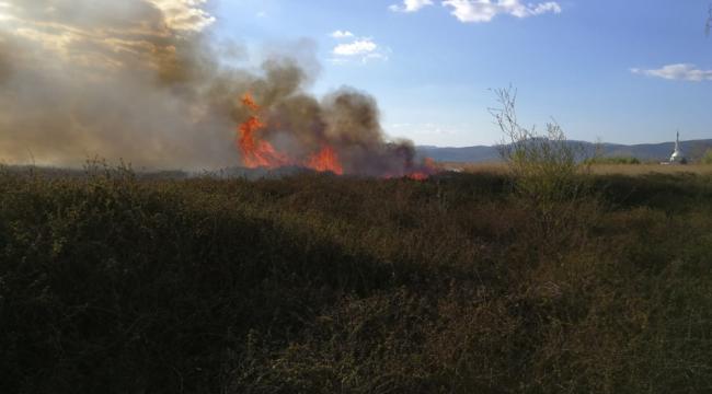 İznik Gölü kıyısında sazlık yangını