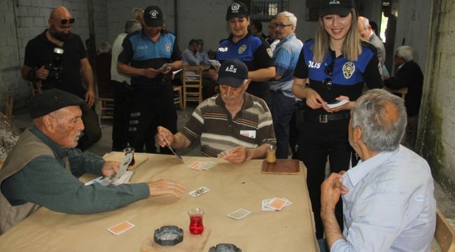 Kahvehane kahvehane gezen kadın polisler burada oyun oynayan erkekleri kadına karşı şiddetin nelere mal olduğunu, kadına şiddet uygulandığı zaman ne tür cezalar alacaklarını anlatan bilgilendirme yaptı.