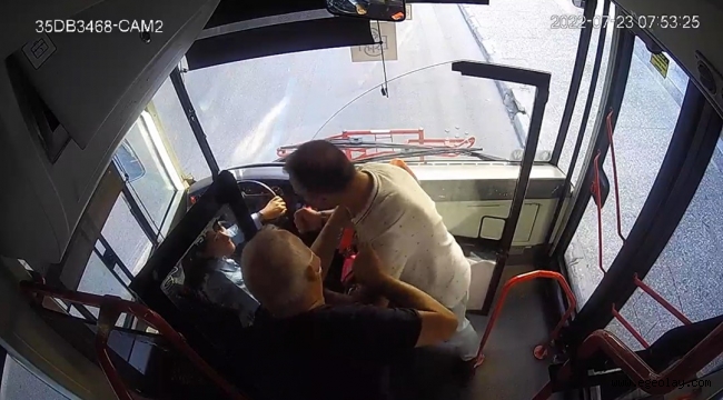 Bu sırada yolculardan G.Y. şoförden kapıyı açmasını istedi ve olumsuz yanıt alınca şoföre hakaret etti. Bunun üzerine B.A. otobüsü uygun bir yere çekerek ESHOT Şoför Destek Hattı’ndan yardım istedi. Polisin beklendiği sırada sözlü saldırının dozunu artıran zanlı, bir anda şoför koruma kapısını kırdı ve kadın şoföre yumruk attı. Yaşanan arbedede şoför B.A. sol gözünden ve kolundan yaralandı. Otobüsteki diğer yolcuların araya girmesi daha büyük bir yaralanmayı önledi. Olay anında yetişen polis, zanlıyı, kasten yaralama ve kamu malına zarar verme suçlarından gözaltına aldı. Olayın şokuyla gözyaşlarına boğulan şoför B.A. darp raporu aldı ve zanlıdan şikayetçi oldu.