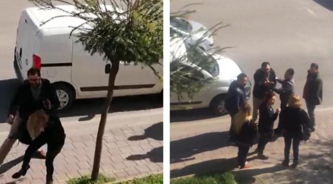 Görüntüyü kaydeden bir kadın olayı sadece seyredip müdahale etmeyen erkeklere de tepki gösterdi.