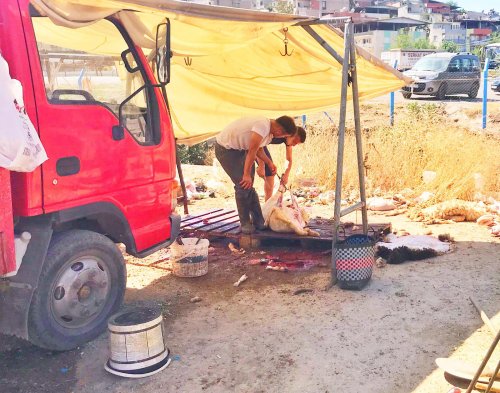 EGEOLAY/İzmir'in Karabağlar ilçesi Eskiizmir pazaryerinde vatandaşlar kurban kesimine devam ediyor. Uzmanların her seferindeKurban kesiminde hijyen konusunda uyarıda bulunmasının aksine Karabağlar'da vatandaşların kurban kestikleri yerler pis ve sağlıksız.Kaynak: Karabağlar’da susuz modern kesimhane!