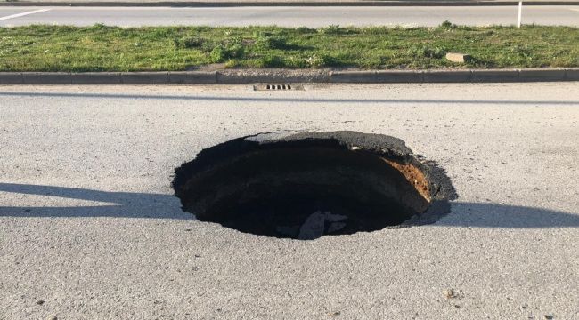 Sivas-Erzincan karayolu İmranlı ilçesi geçişinde obruğu andıran 2 metre çapında çökme oluştu.