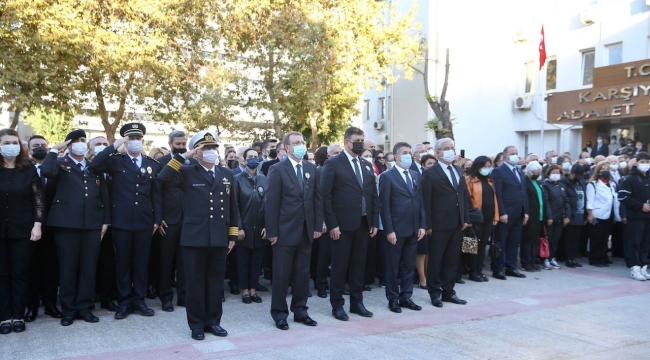 Hükümet Konağı önündeki törende Atatürk Anıtı’na çelenkler sunuldu. Saatler 09.05’i gösterdiğinde, hem tören alanındaki katılımcılar, hem de cadde ve sokaklardaki vatandaşlar, Ulu Önder Atatürk için saygı duruşuna geçti. Siren ve korna sesleri ilçenin dört köşesinde yankılanırken, duygu dolu anlar yaşandı. Ardından Karşıyaka Belediyesi, Latife Hanım Köşkü Anı Evi Özel Müzesi’nin bahçesinde “10 Kasım Atatürk'ü Anma Günü ve Haftası Sergisi”nin açılışını yaptı.