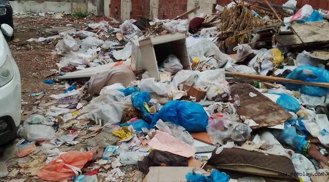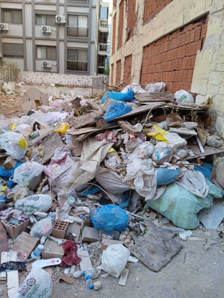 Daha önce depremden hasar görmüş bina yıkılmış oluşan boşlukta çöp yığınları oluşmuş.Belediyenin yanında olan sokağı belediye görmezden gelmiş.