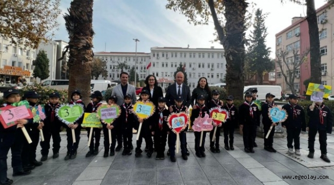 EGEOLAY/Mirza Nil İlkokulu 2/B sınıfı izcileri, öğretmenleri Seher Yılmaz liderliğinde 3 Aralık Dünya Engelliler Günü dolayısıyla farkındalık oluşturmak için Karşıyaka Hükümet Konağı önünde etkinlik gerçekleştirdiler.