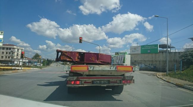 Tuzla'da seyir halindeki bir tır, kasasına güvenlik önlemi olmadan koyulan demir parçası ile ilerledi. Tırın kasasından sarkan demir parçası adeta faciaya davetiye çıkardı. Kasasında demir parçası taşıyan tır bir şeridi tamamen kapatarak ilerledi. Yoldaki diğer araçlar, tırın yanından geçerken demire çarpmamak için yavaşlayarak uzaktan geçmek zorunda kaldı. Kasadan sarkan demir parçasının şans eseri yola düşmemesi olası bir kazayı önlemiş oldu. Sorumsuz sürücü güvenlik önlemi almadan kasasına yüklediği demirle hem trafik güvenliğini hem de yolcuların canını hiçe saydı.