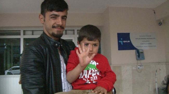 5 yaşındaki Barış Yıldırım taburcu edilirken yakınları hastaneye akın ederken, minik Barış objektiflere el salladı.
