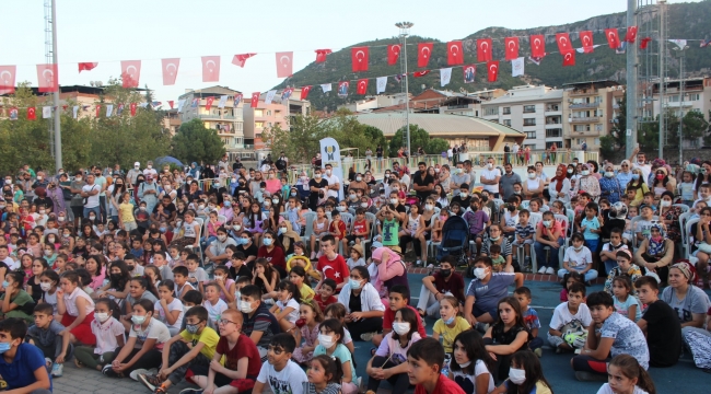 Oyun parkurları ve diğer etkinliklerle eğlenceli vakit geçiren minikler “Ağustos Böceği ve Karınca Baltacıya Karşı” tiyatro oyunun başlamasıyla sahne önünde yerlerini alarak sergilenen oyunu ilgiyle izlediler. Güncel konuların işlendiği oyunda geçtiğimiz aylarda, ülkenin dört bir yanında yaşanan orman yangınları işlenerek ormanlar ve çevre hakkında duyarlı olunması gerektiğine vurgu yapıldı. Çocuklar sergilenen oyun ile hemeğlendi hem de öğrendi.