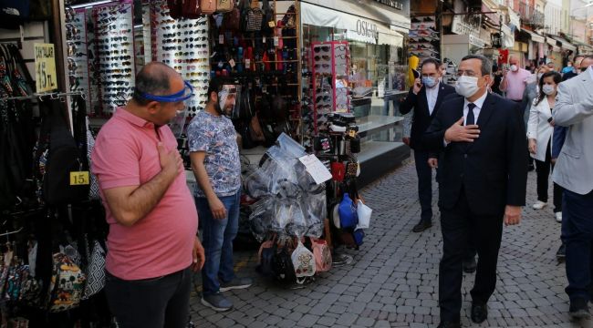 Konak Belediye Başkanı Abdül Batur, CHP İzmir Milletvekili Ednan Arslan, CHP Konak İlçe Başkanı Çağrı Gruşçu, İzmir Esnaf ve Sanatkarlar Odası Başkanı Zekeriya Mutlu, Tarihi Kemeraltı Esnaf Derneği Başkanı Semih Girgin ve belediye meclis üyeleriyle birlikte Kemeraltı Çarşısı’na giderek uzun bir aranda sonra dükkanlarını açan Çarşı esnafını ziyaret etti. Covid-19 salgını için alınan önlemler kapsamında uzun süredir kapalı olan Kemerlatı Çarşısı ile berber ve kuaförler 11 Mayıs tarihinde yeniden çalışmaya başladı. Çarşı esnafını ilk iş ünlerinde yalnız bırakmayan Başkan Batur, yeni dönem için esnafa hayırlı olsun dileklerini iletti.