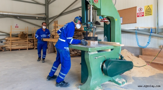 EGEOLAY/İzmir Büyükşehir Belediyesi’nin Kent Mobilyaları Fabrikası üretimini sürdürüyor. Yerel kaynaklarla ekonomik üretim yapılarak hem belediye bütçesine hem de kent ekonomisine katkı sağlanıyor.