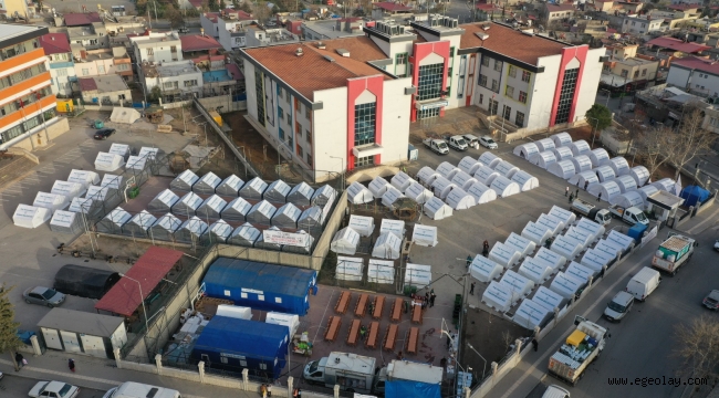 EGEOLAY/Konak Belediyesi’nin Kahramanmaraş’ta Dulkadiroğlu İlkokulu’nun bahçesini yaşam alanına çevirerek kurduğu çadır kentte hayat başladı. Ailelere üç öğün yemek servis edilen çadır kentte çocuklar için özel aktiviteler düzenlenirken, belediyenin uzman personeli vatandaşlara psikolojik destek de sunuyor.