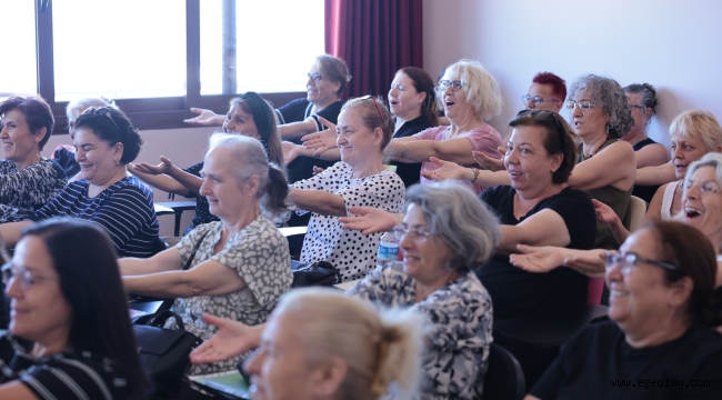 EGEOLAY/Konak Belediyesi İleri Yaş Sağlıklı Yaşam Merkezi’nin 65 yaş üstü kursiyerleri, ‘Kahkaha Yogası ile Sağlığa Merhaba’ etkinliğinde buluştu; dünyanın ve ülkenin üzücü gündeminde hep birlikte kahkaha atarak moral buldu.