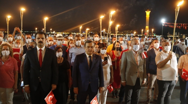 30 Ağustos Zafer Bayramı’na saygı için düzenlenen yürüyüş için Alsancak Türkan Saylan Kültür Merkezi önünden bir araya gelen korteje katılanlara Türk Bayrakları dağıtıldı. Alkışlarıyla destek olan esnaf da unutulmayarak bayraklar ve Atatürk kartpostalları armağan edildi. Cumhuriyet ateşini simgeleyen meşaleler taşıyan kortej, sosyal mesafe ve maske kuralına uygun olarak Gündoğdu Meydanı’ndan Cumhuriyet Meydanı’na yüründü. Yürüyüş sırasında sosyal mesafenin korunması ve maske kullanımı için sık sık anons yapıldı. Evleri yürüyüş güzergahında olan vatandaşlar da balkonlara çıkarak alkış ve bayraklarla 30 Ağustos coşkusuna katıldı. Gazi Heykeli önünde Konak Belediye Başkanı Abdül Batur’un konuşması ile sonlanan Zafer Yürüyüşü, İzmirlilere gurur yaşatırken pandemi kurallarına uyularak yapılan örnek bir Milli Bayram kutlaması olarak hafızalara kazındı.