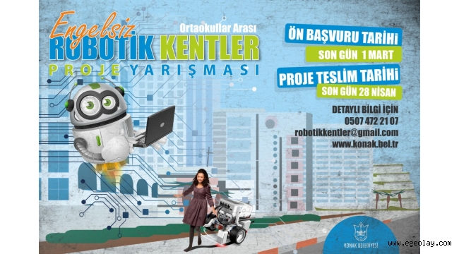 Öte yandan geçtiğimiz yıl ilk kez düzenlenen ve büyük yankı yaratan Kentte Engel Yok Liselerarası Proje Yarışması ile bu yıl ilki yapılan Ortaokullar Arası Engelsiz Robotik Kentler Proje Yarışmasının ön başvuruları yoğun ilgi nedeniyle 1 Mart tarihine kadar uzatıldı. “Kentte Engelsiz Bir Gün”temasıyla düzenlenen liseler arası proje yarışmasında ilk başvuruları kabul edilen öğrenciler hazırlayacakları afiş, kısa film ve kamu spotu alanındaki eserleriyle yarışmaya katılacak.Aynı tema ile Robotik Kentler Proje Yarışmasına katılan ortaokul öğrencilerinin ise ön jüriyi geçen çalışmalarının sunumu mayıs ayında yapılacak. Konak Belediyesi’nin düzenlediği yarışmaların şartnamelerine https://www.konak.bel.tr/ adresinde yer alan “Yarışmalar” sekmesinden ulaşılabiliyor.