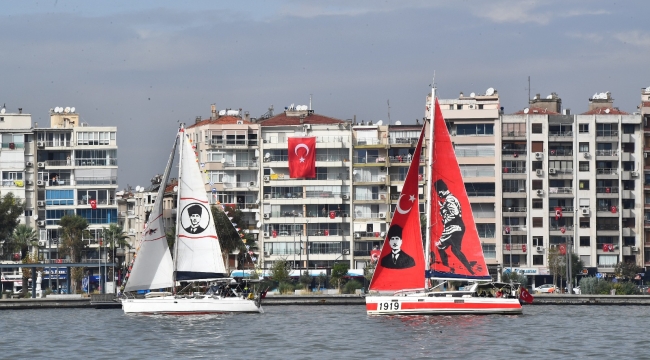İzmir Büyükşehir Belediyesi Gençlik ve Hizmetleri Dairesi Başkanlığı tarafından organize edilen kutlama turunda sekiz yelkenli tekne Körfez’den İzmirlileri selamladı. İzmir Marina’dan Bostanlı’ya kadar Körfez’de tur atan Türk bayraklı ve yelkenlerinde Atatürk’ün fotoğrafları bulunan tekneler Cumhuriyet coşkusunu denize taşıdı.
