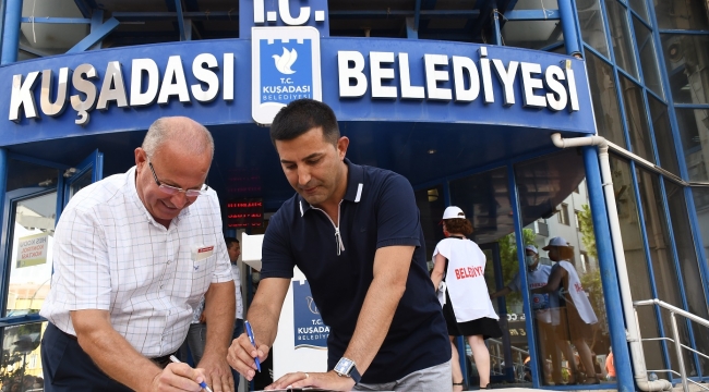 Konuşmaların ardından Başkan Ömer Günel ve Belediye İş Aydın Şube Başkanı Hidayet Yaman tarafından 154 kadrolu işçinin ücretlerine enflasyon oranında zam yapılmasını öngören toplu iş sözleşmesi imzalandı. İmzalanan sözleşme davul ve zurna eşliğinde çekilen halaylarla kutlandı.