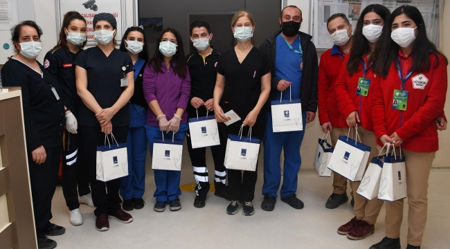 EGEOLAY/Kuşadası Belediyesi, pandemi döneminde gece gündüz demeden büyük bir özveriyle çalışan sağlık çalışanlarını 14 Mart Tıp Bayramı’nda unutmadı. Kentteki sağlık kuruluşlarını ziyaret eden Kuşadası Belediyesi Özel Kalem Müdürü Ömer Cevat Göğez, sağlık çalışanlarının Tıp Bayramı’nı kutlayarak hediyelerini verdi.