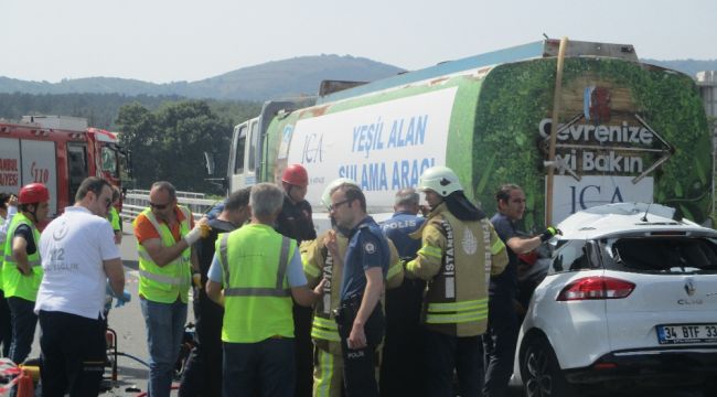 Kuzey Marmara Otoyolu'nda seyir halinde olan araç sürücüsü, emniyet şeridinde bulunan sulama aracına arkadan hızla çarptı. Sürücü, araç içerisinde sıkışarak hayatını kaybetti.