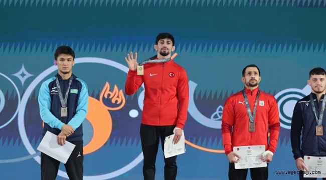 EGEOLAY/Mısır’ın İskenderiye kentinde düzenlenen Ibrahim Moustafa Ranking Serisi Güreş Şampiyonası'nda altın madalya kazanan İzmir Büyükşehir Belediyesi Gençlik ve Spor Kulübü sporcusu Kerem Kamal madalyasını depremzedelere armağan etti.