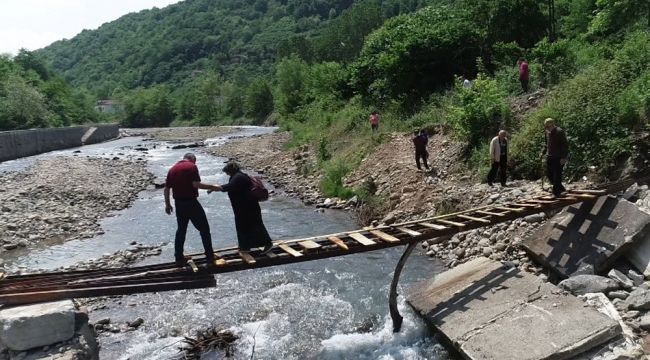 Trabzon'un Araklı ve Sürmene ilçeleri arasından geçen Küçükdere çayı güzergahında bulunan Sürmene'nin Aşağı Çavuşlu mahallesini karayoluna bağlayan köprünün sel suları nedeniyle yıkılması üzerine ilkel yöntemlerle yapılan köprüden geçen vatandaşlar korku dolu anlar yaşıyor. Tahtadan yapılmış köprünün altında geçen dere sularına kapılmaktan korkan mahalle sakinleri, normal yolda bile yürümekte zorlanan yaşlı insanların derme çatma bir köprünün üzerinde geçerken adeta hayatta kalma mücadelesi verdiğini belirtiyor.