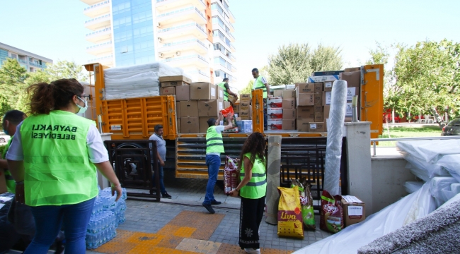 Başkan Sandal üst üste yaşanan felaketlerin ardından yangından etkilenen vatandaşlarımız için Bayraklı Belediyesi Sosyal Yardım İşleri Müdürlüğü’nü harekete geçirdi ve Bayraklı halkının da desteğini alarak,yangından etkilenen bölge halkına yataktan battaniyeye,yanmaz eldivenden gıda paketlerine kadar birçok malzemeyi Marmaris’e ulaştırdı.