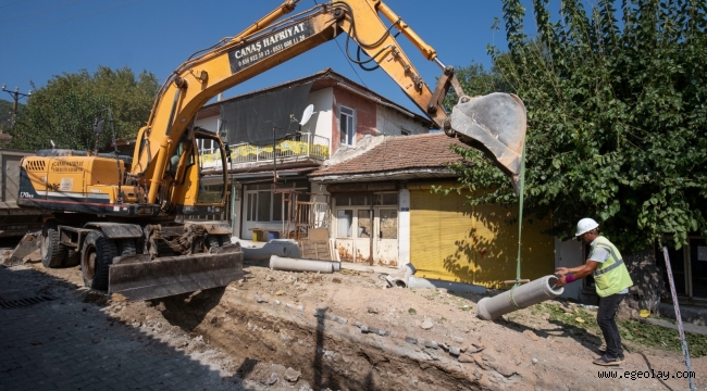 EGEOLAY/İzmir Büyükşehir Belediyesi İZSU Genel Müdürlüğü şiddetli yağışların yol açtığı su baskınlarını önlemeye yönelik çalışmalarını kent genelinde sürdürüyor. Menderes’in Değirmendere mahallesinde 11 milyon liralık yatırımla başlatılan yeni atık su ve yağmursuyu hattı imalatı devam ediyor.