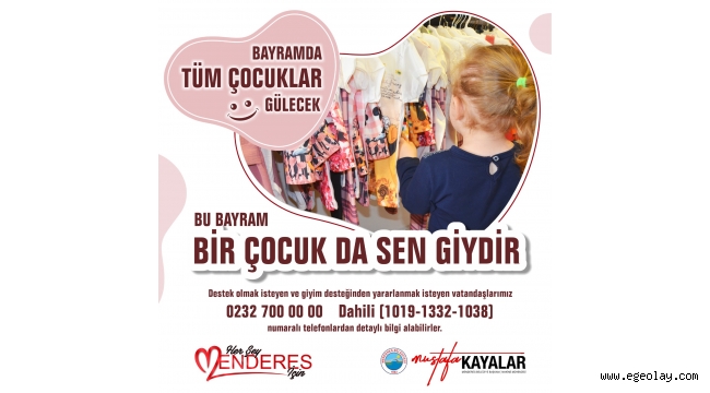 EGEOLAY/Menderes Belediyesi’nce hayata geçirilen “Bir Çocuk Da Sen Giydir” projesiyle ilçede bayramlık kıyafeti olmayan çocuk kalmayacak.