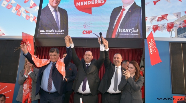 CHP İzmir Büyükşehir Belediye Başkan Adayı Cemil Tugay ise Menderes’in tüm ihtiyaçlarının yeni dönemde karşılanacağını belirterek, ‘’ İzmir’in tüm ilçelerine eşit hizmet anlayışımızla çalışacak ve İzmir’i geleceğe taşıyacağız. Menderes’te bizim için çok önemli. Tarım, turizm ve sanayisiyle İzmir’in parlayan bir yıldızı olan Menderes’i ileriye taşıyacak hizmetleri hayata geçireceğiz. Vatandaşlarımızın 508 numaralı otobüs hattı talebi var. Menderes’ten Konak’a aktarmasız ulaşım istiyorlar. Göreve geldiğimde yapacağım ilk iş bu hattı yeniden devreye sokmak olacak’’ dedi.