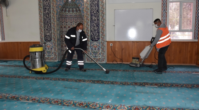 Pandemi nedeniyle daha bir itina ile gerçekleştirilen temizlik çalışmaları kapsamında Menemen merkez ve kırsal mahallelerdeki camiler ve cemevlerinde başlatılan çalışmalarda halılar ıslak ve kuru temizleme makineleri ile yıkanıyor ve genel temizlik çalışmaları gerçekleştiriliyor.