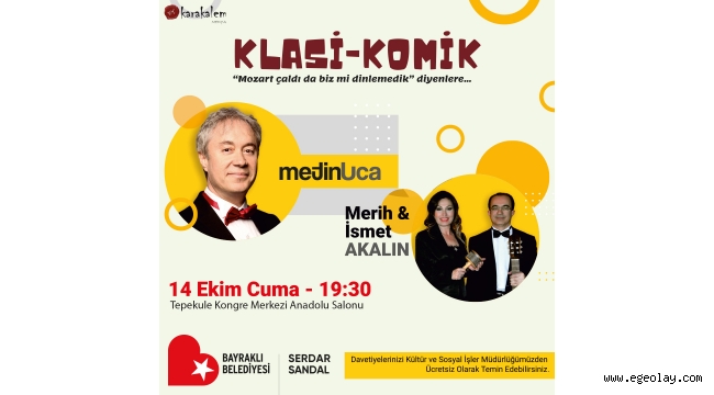 EGEOLAY/Ünlü sanatçı Metin Uca, müzikal gösterisi Klasi-Komik ile Bayraklı’da seyirci karşısına çıkacak. Bayraklı Belediyesi ev sahipliğinde 14 Ekim Cuma günü, Tepekule Kongre ve Kültür Merkezi’nde düzenlenecek ücretsiz etkinlik saat 19.30’da başlayacak. Başkan Sandal “Tüm vatandaşlarımız davetlidir” dedi.