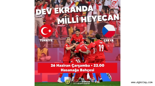 EGEOLAY/Buca Belediyesi, Avrupa Futbol Şampiyonası'nda A Millî Takım'ın heyecan dolu mücadelesini dev ekrana taşıyor. Futbolseverler, Hasanağa Bahçesi’ne kurulacak dev ekranla Çekya ile karşılaşacak A millî takıma destek verecek. Buca Belediye Başkanı Görkem Duman, tüm İzmirlileri bu heyecana ortak olmaya davet etti.