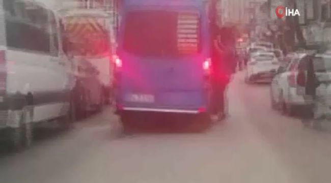 Minibüsün kapısından sarkarak yapılan tehlikeli yolculuk kamerada