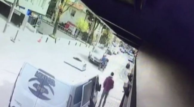 Kaza anı ise güvenlik kamerasına yansıdı. Görüntülerde, otomobil sürücüsü cadde üzerinde seyrederken aniden sola dönüş yapmak için direksiyonu kırıyor. Sürücü o esnada sollama yapan motosikletliye çarpıyor. Hakimiyeti kaybeden sürücü motosikletiyle beraber park halindeki minibüsün altına giriyor. Kaza esnasında kaldırımda bekleyen bir vatandaş ise korkuyla geri kaçıyor.