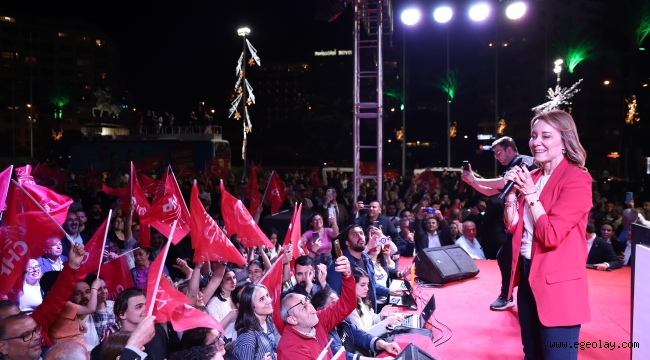EGEOLAY/Sandıkta rakiplerine büyük fark atarak Konak Belediye Başkanı seçilen CHP’li Mutlu, kutlamaların adresi olan Cumhuriyet Meydanı’nda coşkulu kalabalığa seslendi. Mutlu, “Büyük bir değişim başladı bugün. İktidara giden CHP'nin ayak sesleri bunlar” dedi.